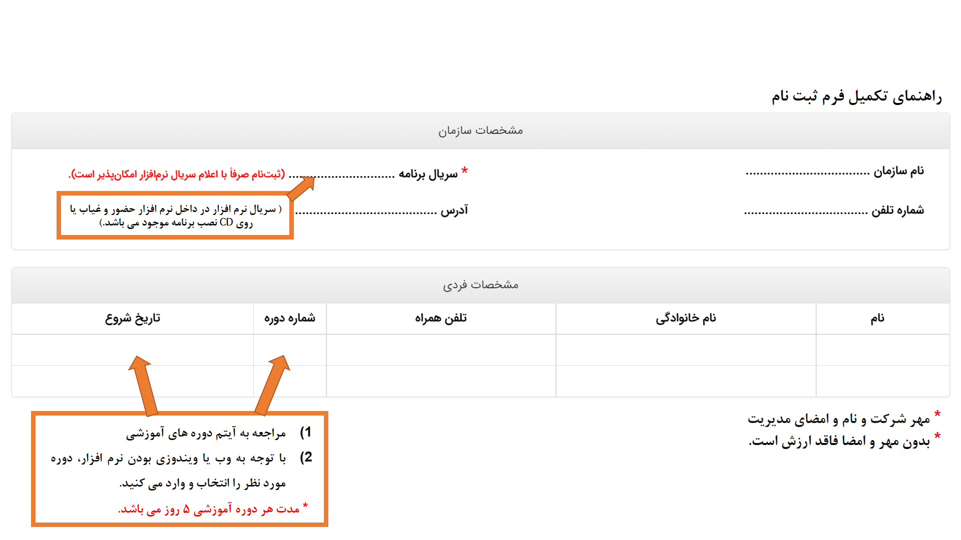 فرم اعلام آمادگی برای حضور در دورههای آموزشی